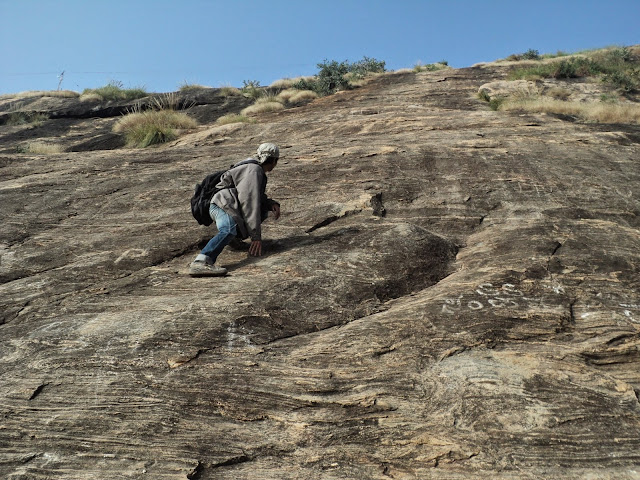 The ascension was a pretty decent one I must say. Took us hardly 45mins. It was surprising even for me. Usually I take 45mins to ascend without speech. But this time we enjoyed the trek. Thing about Kabbaldurga is, even though the hillock is as mighty as Madhugiri, the terrain is pretty steep and takes lesser time to complete each of them. Like before I have divided the climb into the following sections: