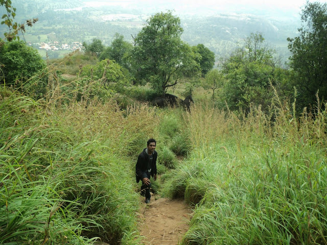 This stretch is the easiest and basically warms you up for the trek. We completed this part of the trek like a morning walk. It is a thin path which runs through field and gradually tapers up. Few abandoned stone stairs finally leads us up to the steep rock face.