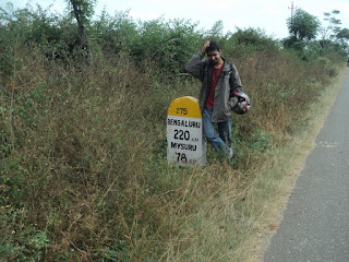 Surprisingly it was a pretty good find and we enjoyed the meal thoroughly and left the dhaba afloat. The sun already had begun it’s traverse down towards the horizon and the air had turned icy cold. We reached Mysore after about 30mins of riding and pulled over at the by-pass road and told Gauti that we would continue towards Bangalore at a slow pace. Thanking Gauti for making it that day, we said good bye and I told I would take over the riding part.