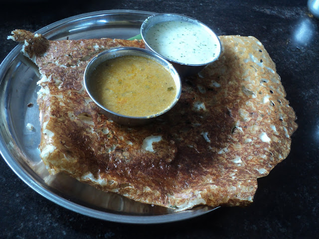 Gauti and me tried convincing Madhu that we knew a good dhaba, but it was in the outskirts of Mysore. But Madhu’s hunger had taken over and the monster had awakened :P he tried to pull over at each and every stop. But finally we settled a new dhaba for some lunch.