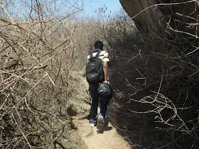 As we entered we could spot a lot of carvings of Gods etc., then a lot monkeys swarmed around us, surprisingly they didn’t do us any harm as we had expected them to do. Finally we found the path to trek to the top. The path was brilliant, it was a narrow path which ran through shrubs which were totally dried up.