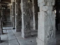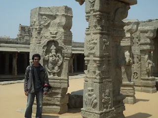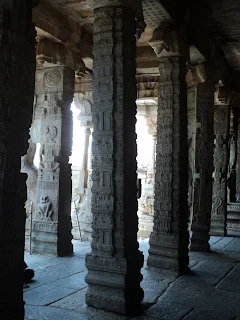 3. Hanging Pillar: Oh yeah this is my favourite feature of this temple. It is a suspended column hanging down from the ceiling. The pillar is literally hanging from the roof (Eg for a Cantilever, haha Proud Mech Engineer). We did spread a kerchief below it, just to check :P. Back in the days the Britishers did try to study it, when they tried re-positioning this pillar; all the pillars within the temple re-aligned themselves. Fearing the collapse of the structure they left it on its own. (Our ancestors totally owned the subject called mysterious engineering)