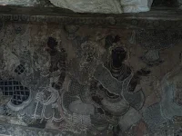 2. Ceiling Paintings & Wall carvings – The entire ceiling of the main temple is filled with beautiful paintings depicting various instances like war, sacred rituals etc., The walls exhibit carvings clearly of Vijayanagar Style. One of the main carvings is that of the dancer with three legs.