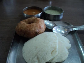 We rode a few kilometres & pulled over at a hotel next to RRMC for some light breakfast. We had nice time explaining to our Swiss friends how to eat South Indian food :P