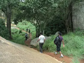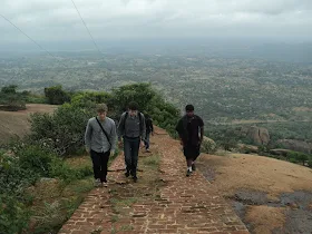 The descension was roughly for about 45mins. It was a quick one when compared to the ascension. The 7 of us one after another began the hike downhill. The trek down was enjoyed throughout. Dowrisha with his spontaneous and unlimited reservoir of jokes made the atmosphere a jovial one. Very soon we passed by the second and first fort wall respectively to reach the base of the hill.