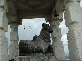 Ah, yeah, the top. As we reached the top, I first waved a big “hi” to the Nandi which rests on top looking towards Bangalore. After having enquired as to how he had been we removed our shoes and sat down in line sipping water and talking all kinds of shit. The hobbies of Swiss people, the various places for a hike in Swiss etc.,