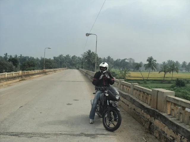 After the various turns and twists we reached the Mahadevpura Bridge. The river that was flowing below had a soft gush and the blanket of mist resided on her surface. The view was fantastic and the weather was cool.