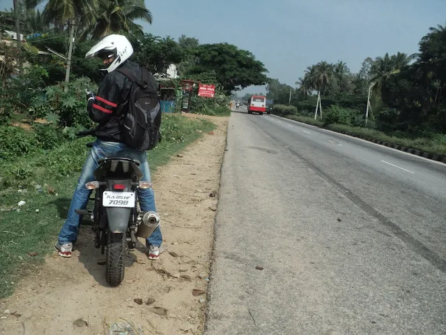 After a smashing breakfast we continued on the Mysore road. cruising past Ramnagar, Channapatna, and Maddur. After reaching Mandya we pulled over for a tea break and enquired about the place. After getting the proper direction we took the right deviation from the highway and entered the country roads.