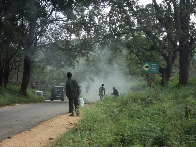 Anyways double heading back and waging our way in between people, signalled Zethu and Manju to park the bike a little back, it was time to head into the forest village which was on the other side of the lake where the elephant had passed away.