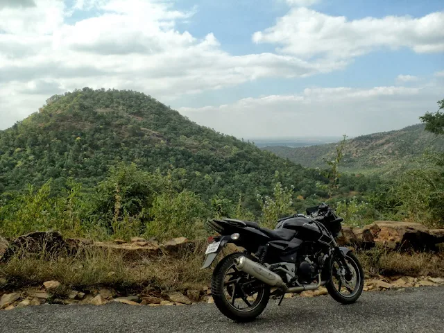 With our tummies satisfied we decided to hit the road on longer stretches from then on. We rode non-stop until Channpatna from where we took a deviation and headed towards Kabblu. The ride was superb road narrowed and bigtrees made their way alongside the road. It was not long before we got the first glimpse of the mighty Kabblu hillock we pulled over at our regular stop.