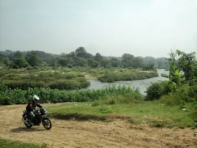 As we departed from the city of Ramnagaram, we reached the deviation which would lead us to the reservoir. There laid a difference too, I realized I had reached the deviation but Sukesh with all his concentration didn’t spot the deviation board. I pulled over and tried calling him again, but again in vain the call was not picked up. Then I parked my bike on the centre stand and start to doze off. After a good 15-20mins a call came upon my phone and it from Sukesh, asking me where I was lost :P Requested him to take a U-turn and said that I would be on the road, literary on the road to cut him off at the deviation. After another 10mins finally like said I stood on the center of the road and cut him off. Finally we took the deviation road and reached the reservoir.