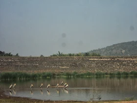 Ah, our home. But the sight of the reservoir kinda bought a strange sadness to me. I could feel the water retreating back to the center. The water levels had gone down a lot. But a few storks staring at us lit me up. We sat near the waters for sometime speaking all kinds of shit!