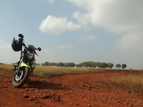 This was a 30kms stretch, pretty much straightforward roads. The 4 of us on 3 bikes rode to meet Kaushi near Jalahalli cross who was waiting for us patiently. After departing the city roads we brought down the pace of riding and caught up with kaushi’s world. After which we tried out his new bike in the country roads. Also never did we forget to pick on him until he chased us on roads and off-roads into the fields :P