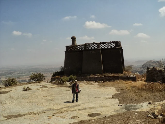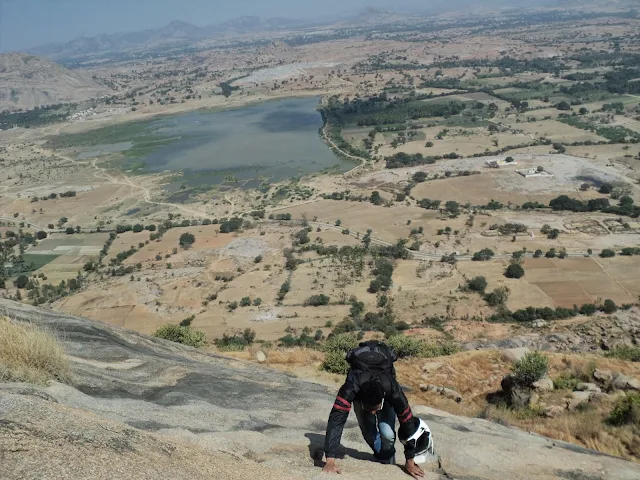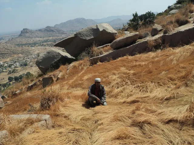 We spent about 1.5hrs at the top. Once we reached the top we explored the peripherals first. After having got a sense of the boundaries, we kept walking and exploring the place. We spotted old Oil storage bins, Ruined buildings which seemed like granaries. Oh yeah we also spotted a tree which looked very similar to the one in 6-5=2 movie. Then we found a few boulders and decided that would be the place crash. We had a few biscuits and drank water. After this we spoke for some time and then began drifting into the tranquility of the place.