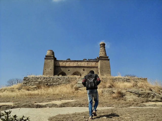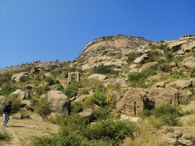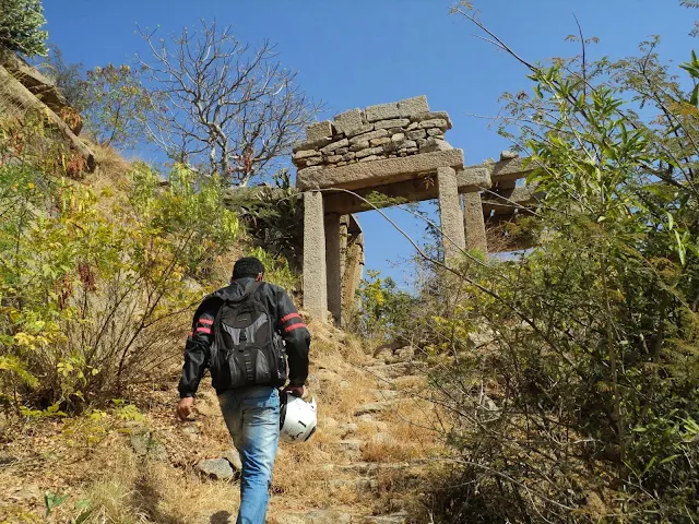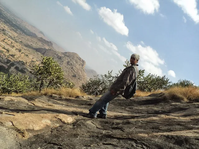 Anyway, after a good walk, we stood before a rocky terrain. This I must say was pretty steep and finally loosened up my shoulders and started twisting my ankles and wrists. (Yeah it was the wake-up call for the lizard king) Manju’s shoes with a flat worn-out sole were an area of concern. But with some new techniques we managed to get past the rocky terrain to find ourselves in front of a 10-12feet fort wall with no way to go around it. Finally, decided to climb up the fort wall, without looking back obviously. After having climbed pulled up Manju and we were set for the last stretch.