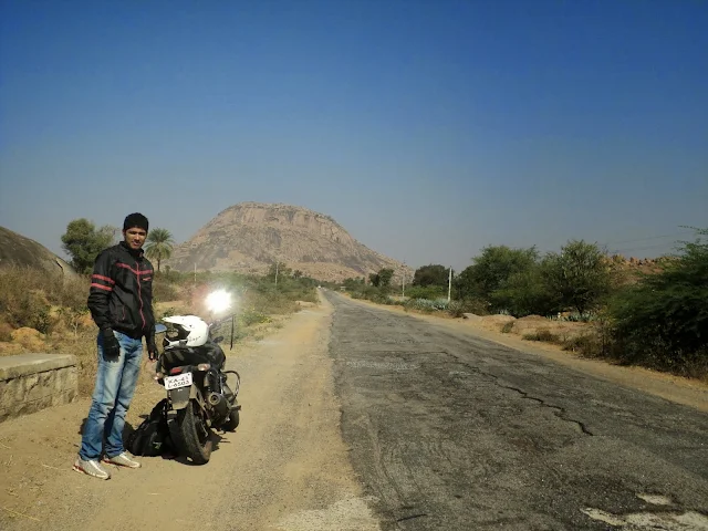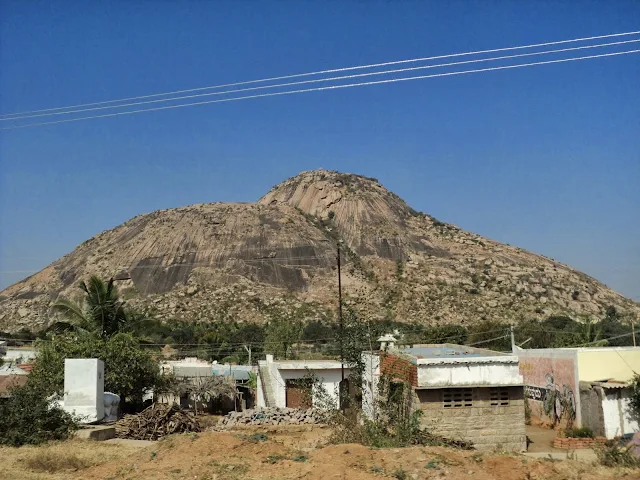 After our tummies satisfied we took the deviation towards Madhugiri. The roads turned worst, actually there were no roads at all. As the re-laying was being carried out, we had a bumpy ride on mud, stones and patched roads. After a couple of hours we spotted the isolated Channrayanadurga standing in all her glory.