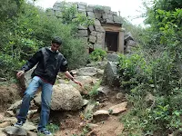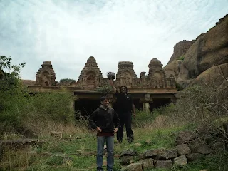We crashed down, removed our pull overs & rested in the cool shade of the ruined temple for quite sometime. Once we were up, we started playing all sorts of stone games. (One who hits the pillar afar, one who hits the center of the circle etc.,)