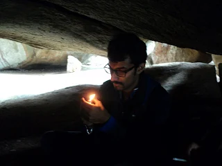 It was long already that Dattu was holding back. Once he began to unleash his string of jokes one after another, the laughter kept coming out, to the verge of choking us now and then! As we entered the caves, the beauty of the sun’s rays penetrating into the dark caves through small openings on top was simply breath taking to watch. We searched for a nice cave to crash in and settled down.