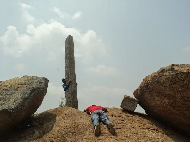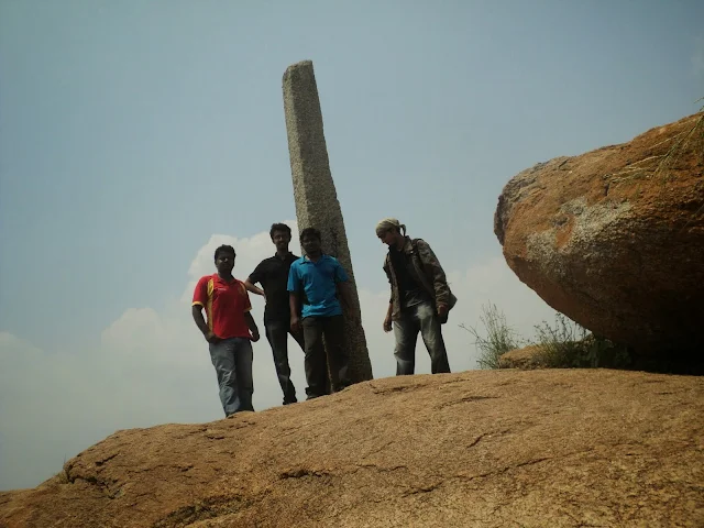 Once we reached the pillar, Momz danced his way to it and hugged it tight. And well Madhu tried dancing his way up but collapsed flat right in front of it hehe (Same as in Huthridurga trek) . Deefu & myself had a good laugh and went around the place and finally found a nice cave to crash in. We all enjoyed the aerial view & the winds for some time.