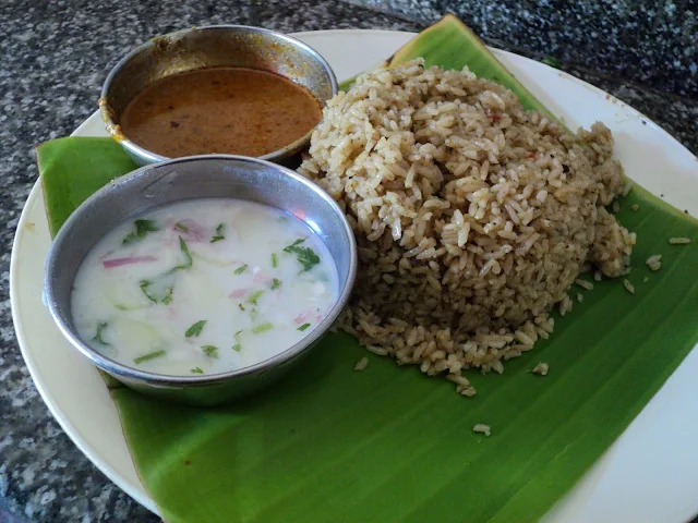 We pulled over at a few places take have some water. We decided that the lunch would taken near our college rather than dhaba on the highway. So we rode non-stop until we reached NICE road entrance at Kanakpura road. After this we directly ended up near college, here we went to Biriyani Mane.. hmm college memories evoked again.