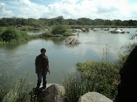 We were pleased that we were the only ones at the place. We took a long stroll (with Madhu obviously fussing about it :P) in between the canal and the river to explore the beautiful place. We could spot a variety of birds and the water looked crystal clear. After about an hour of exploring the place we headed back near the anicut and found a neat spot to dip into the river.