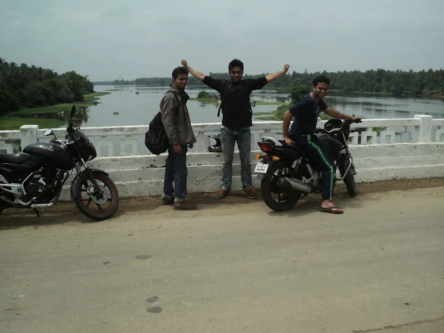 The weather was good, the air was clean, water looked sparkly fresh, lots of birds here and there. Looked just perfect! We walked in between the canal and the river for sometime. wondering whether to get down or no. Then Dilip said he would push all of us inside the river if we refused:P And first he got into the canal and tried all sorts things. Caught a crab, slipped into the gushing waters and was dragged off by the force of waters, finally we pulled him out. Took our bikes to a decent place, put all our belongings into our bikes and off we went through the river.