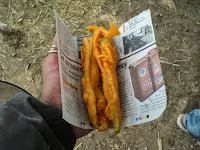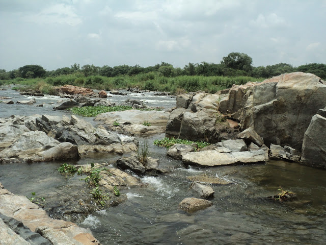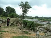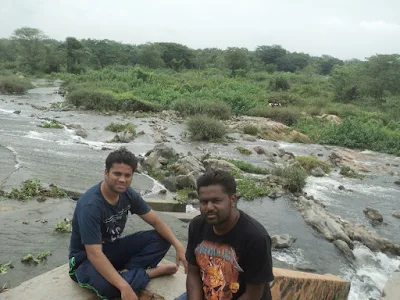 Wading in the gushing waters we went past several boulders to find a very nice spot. All three of us sat, and well me almost went underwater and kept sleeping, coming out just to breathe hehe. When a plant or mosses used to come floating everybody used to pick it up and throw it on dilip ( Why? because he hated it) We spent about 3hours in the water, after which we found a lady preparing hot chilli bajjis on the river side. We ate them with some good chutney. After which we left Mahadevpura.