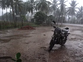 As we left Mahadevpura, our bodies were tired. Dark clouds had begun to cover the sky. As said earlier lot of turns from the highway we had taken to reach the place. So if we would miss any of these it would be a new route altogether. Dany & Madhu raced ahead, but Dilip & me went on shouting, speaking non-stop. We were constantly engaged in a conversation and missed a crucial turn. We realized we had missed a turn, but patted ourselves saying all roads will reach the highway and we had all the time (Bad Move!:P). But the road kept going on and down came the mother of all rains. it started pouring cats out of nowhere and we ran into a “Aale mane” (cane sugar processing) Ah, it felt good, standing in the shelter in that heavy rain.