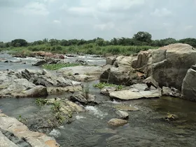 Wading in the gushing waters we went past several boulders to find a very nice spot. All three of us sat, and well me almost went underwater and kept sleeping, coming out just to breathe hehe. When a plant or mosses used to come floating everybody used to pick it up and throw it on dilip ( Why? because he hated it) We spent about 3hours in the water, after which we found a lady preparing hot chilli bajjis on the river side. We ate them with some good chutney. After which we left Mahadevpura.