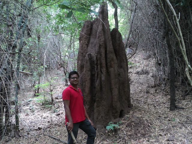 We found a very nice lake to rest, but trust me we were beginning to get worried by now. The forest had got pretty dense and the sounds of only insects and animals were beginning to creep us out. We were making extra sure not to step on a snake or surprise any bear or any other wild animals. It eventually got darker and quieter. There were huge anthills all around the place and few places we had crawl through the thorny shrubs and bushes to get across.