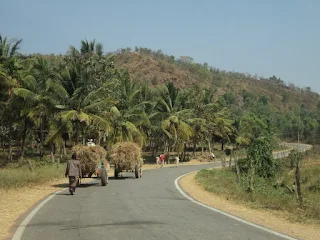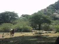 Man, were we off on a trip? Yes we were. Such a nice nap, never had I had. We got up, yawned and then sat up staring at the skies and the confused cows that were looking straight at us, wondering who the visitors were. Then we met a cowherd who was desperately trying to get a small calf into a pond for bath. But it was resisting his and playing around. IT was damn fun to watch. After spending a few more minutes packing up, we decided to leave Melukote.