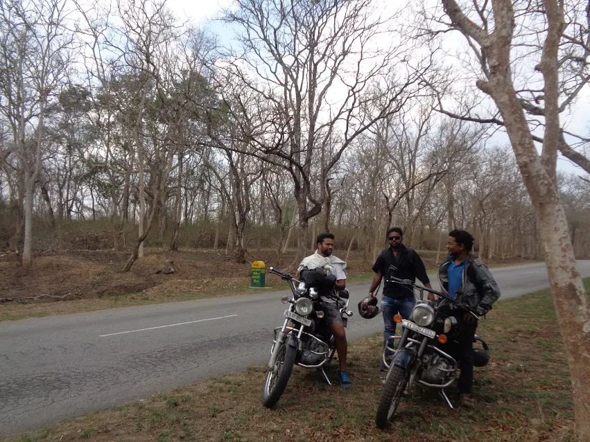 The roads were pretty scary to ride on but I wondered how bikes are allowed as I had heard bikes had been banned from Nagarhole region. But then we saw a sign board which read “Mysore – 70kms”. Then we realised we had ended up in the wrong forest but what the hell, mysore was close. As we rode on the forest glimpses pleased us all throughout the journey and then came the bigger bummer. We were expecting Mysore to be around 25kms after riding quite a while. But we were forced to take a deviation into the bunch of villages amidst the forests itself, now I looked at Ashok again “Machaaaa.. tiger only put that board there ra.. wicked smile it had I told you :P”. After riding for some 30-40mins we found another board which read “Mysore 75kms” we looked at Madhu and started shouting and yelling at him, he looked at us as though we were mad. Then finally we pulled over as we needed breaks big time.