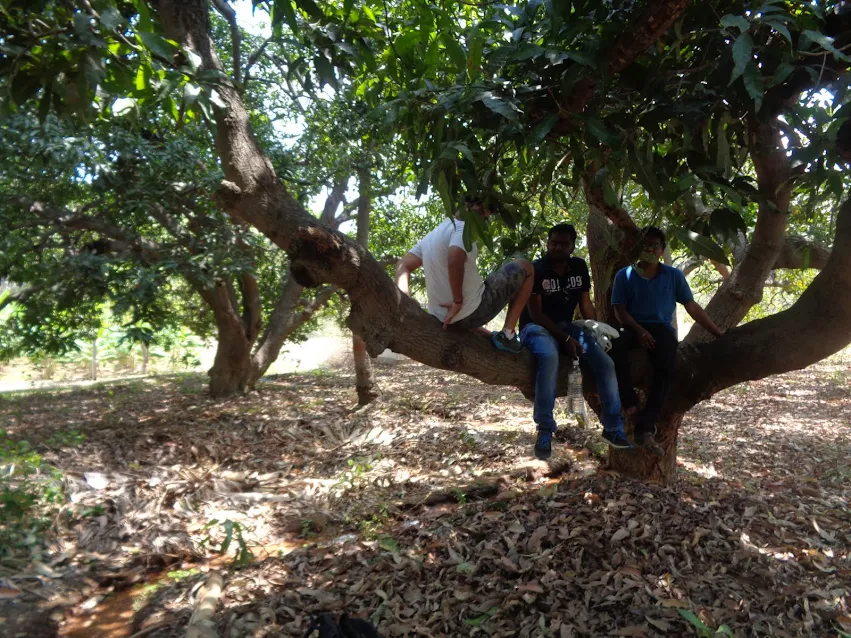 We asked if we could crash in for 1-2hours and he gladly obliged for some juice as well. A stream of fresh sparkly water ran right below the tree and the time just flew right past our eyes. Madho trying to get off the tree and falling straight flat on the ground had to be the pick of the events. We had great time, but then we realised we had emptied off one whole bottle. Then we decided we head out as our tummies had begun to growl and Madhu promised us good biryani for lunch.