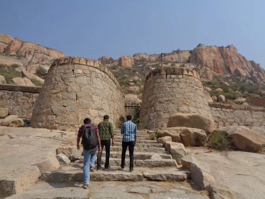 The trek is very similar to that of Madakasira. There are about 7 levels of fortifications to reach the top. As we began the trek, we could find a lot of temples initially and then the twisty turns began. These turns ran through some thick thorny bushes. To better understand the fort we usually put ourselves in the invading soldier’s shoes. This way you know when your ass gets kicked around haha! But trust me this works huh.