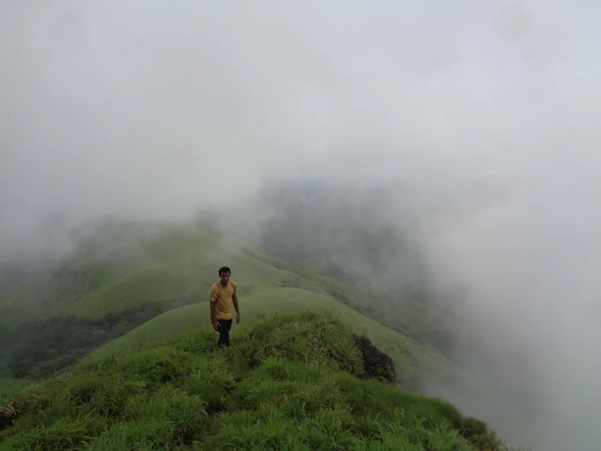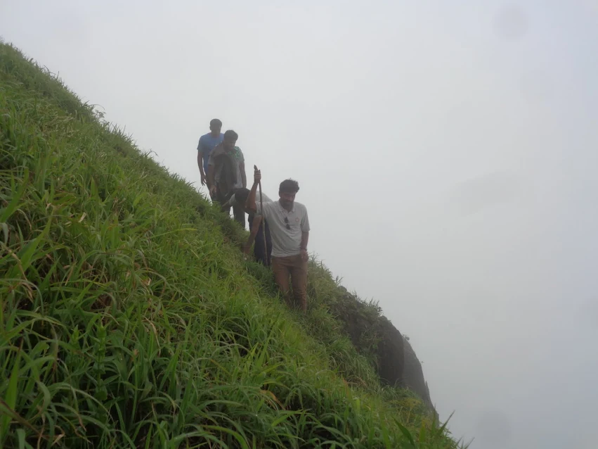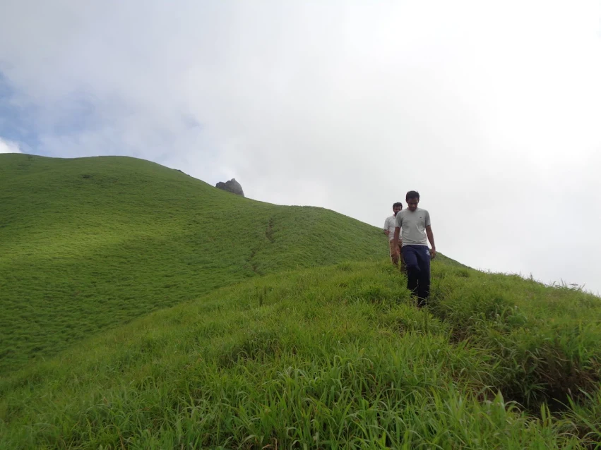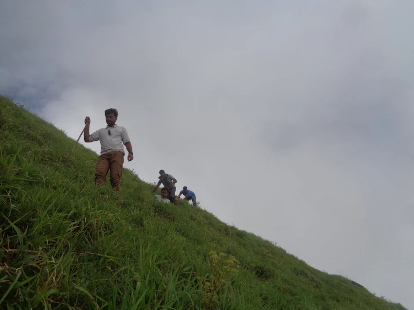 This was descent trek, more of a walk, it took us 45mins from Jenukallu to Digallu. But to start things of we had to descend Jengal severely in terms of altitude to reach a flat land. This was insanely steep and the misty winds made it horror show. This part we executed with extreme caution and holding on tightly to the sturdy grass.