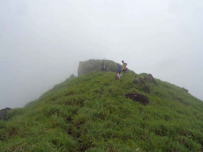 As we began the final stretch, the misty winds began to cover the top as though welcoming us to the peak. It felt quite dangerous at this point of time. The path turned narrow and we proceeded calmly amidst the howling winds to reach the top of Jenukallu peak.