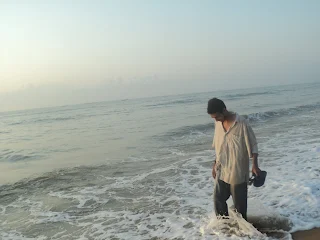 after crossing Sangama (where one can get into water safely) then walk/board a